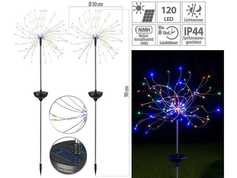 * Garten-Solar-Lichtdeko mit dynamisch leuchtendem Feuerwerk-Effekt