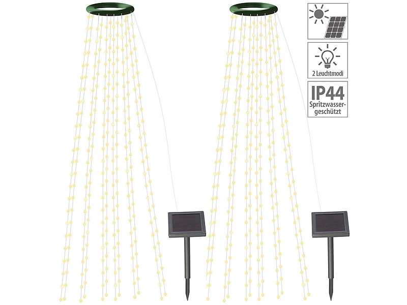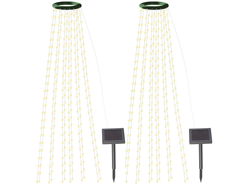 - 2 Solar-Tannenbaum-Überwurf-Lichterketten mit 12 Lichtergirlanden: je 1,9 m Länge
