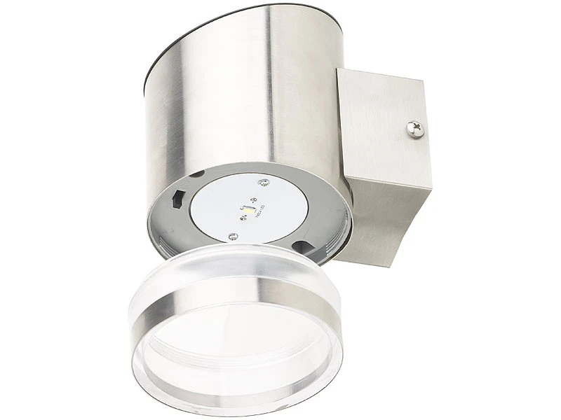 Flexible Montage, ohne Kabelverlegen: Sie benötigen keine Strom-Zuleitung. Somit montieren Sie die Wand-Leuchte flexibel wo Sie wollen. Das moderne Edelstahl-Gehäuse macht sich gut an Ihrer Hausfassade.