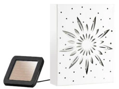 Die Energie für die kraftvolle Licht-Installation bezieht das Bild aus der Sonne. Ein großes, unauffälliges Solar-Panel können Sie per Erdspieß oder Wandbefestigung nach der Sonne ausrichten. So sammelt es genug Power für stundenlange Beleuchtung.