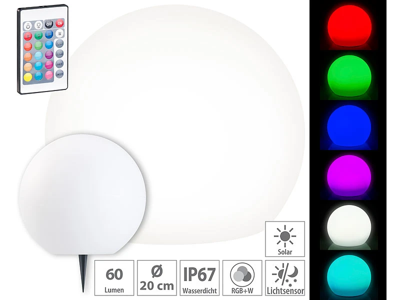 - Solar-Leuchtkugel inklusive Erdspieß, Fernbedienung mit Knopfzelle und deutscher Anleitung – Solarkugel bunt – Außerdem relevant oder passend zu: Lampe, Kugel, Laterne, Leuchte, Schmuck, Tischlampe, außen Deko, Beleuchtung, Tischlampen, Fernbedienungen