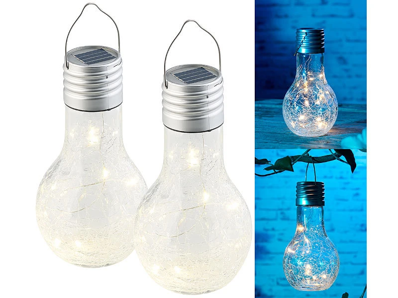 - 2 Solar-LED-Glühbirnen inklusive deutscher Anleitung – Solar-Glühlampen Garten – Außerdem relevant oder passend zu: Leuchte, Terrasse, Kabellose, Solarpanel, Gartendeko, Beleuchtung, Lichterkette, Lichterketten