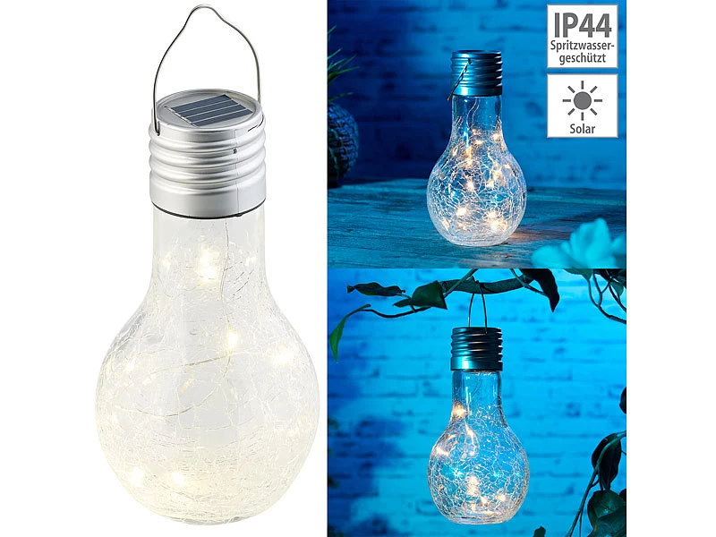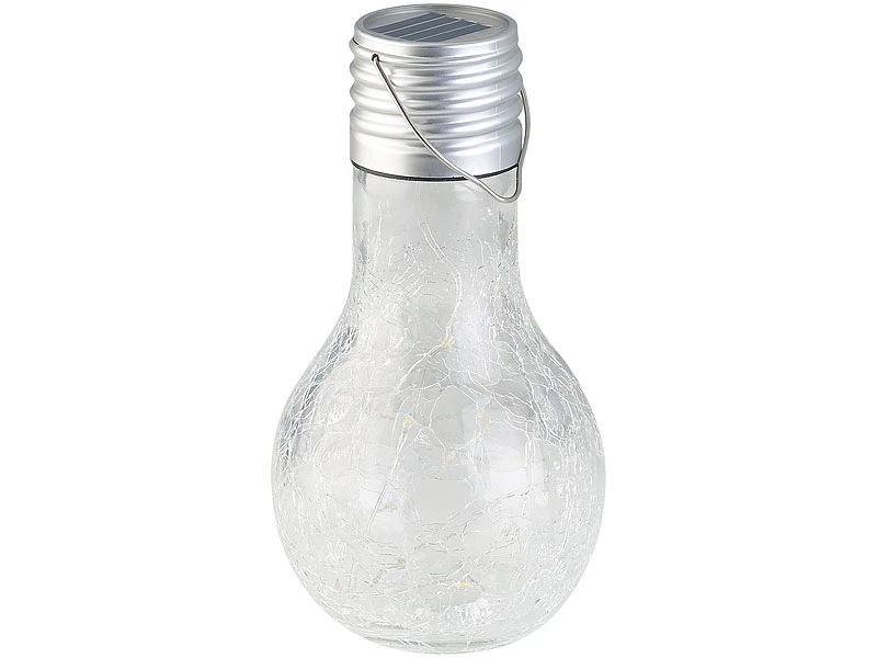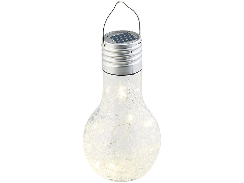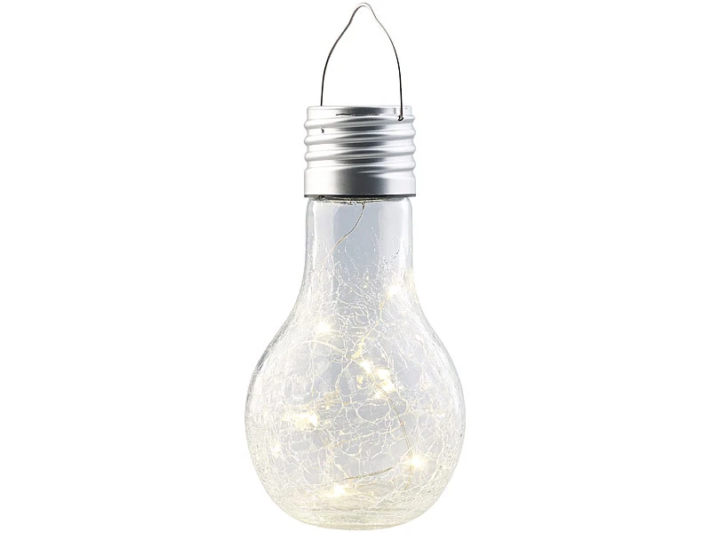 Setzen Sie ganz einfach Licht-Akzente: Die 8 warmweißen LEDs Ihrer neuen Deko-Leuchte schalten sich am Abend automatisch ein. Schon sorgt die Echtglas-Glühbirne im Crackle-Design für eine individuelle Atmosphäre – ob auf dem Balkon, der Terrasse oder im Garten.