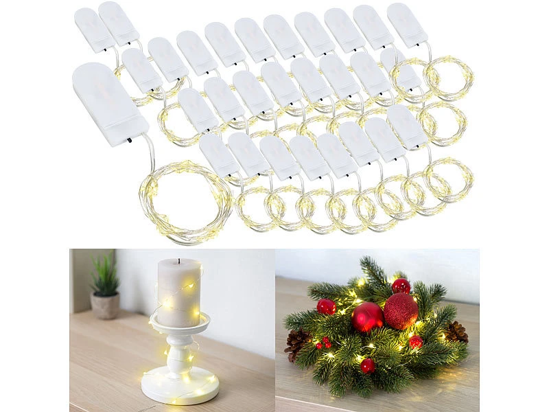 - 30er-Set warmweiße LED-Lichterketten inklusive 60 Knopfzellen und deutscher Anleitung – LED-Draht-Lichterkette Batterie – Außerdem relevant oder passend zu: Kette, Weihnacht