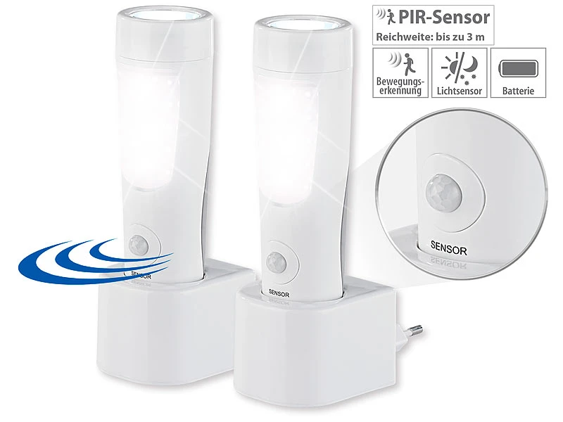 - 2 zuverlässige Nachtlichter mit PIR-Sensor: gehen bei Bewegung automatisch an, bis 3 m Reichweite