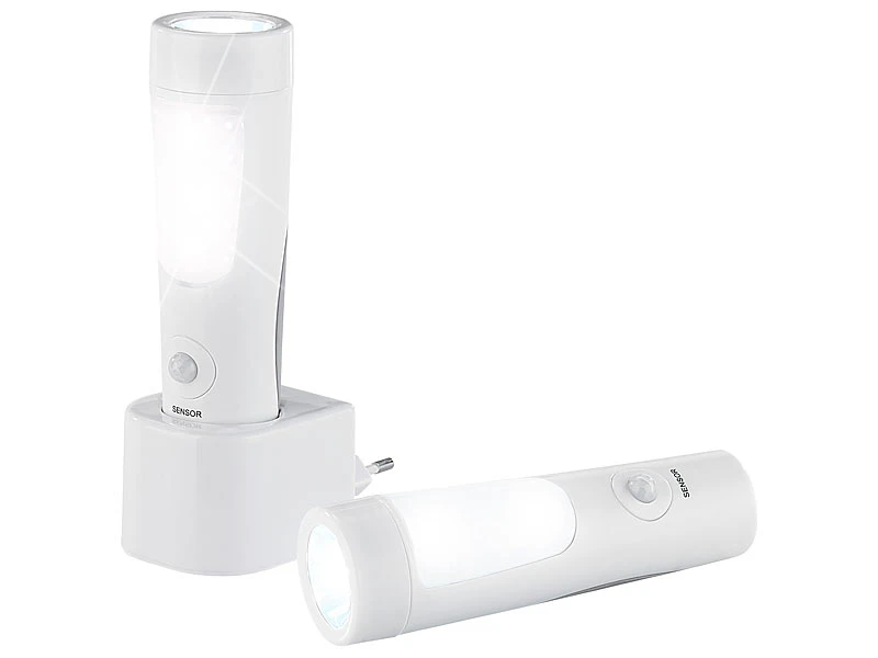 Auch zum Mitnehmen: Mit einem Griff verwandeln Sie die Nachtlichter in Taschenlampen. So hat nicht nur das Tasten nach Lichtschaltern ein Ende. Denn Ihre Taschenlampen stecken jetzt immer an ihrem Platz!