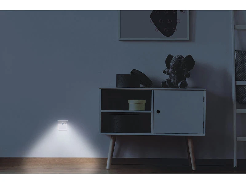 Sanfte Beleuchtung für sichere Wege: Das clevere LED-Nachtlicht lässt Sie nie mehr im Dunkeln stehen. Setzen Sie es überall ein, wo Sie es brauchen. Zum Beispiel im Schlaf- und Kinderzimmer, im Flur oder am Treppenaufgang. Dank einstellbarer Farbtemperatur bestimmen Sie jederzeit, ob Ihr neues Nachtlicht in Warmweiß oder Tageslichtweiß leuchtet.