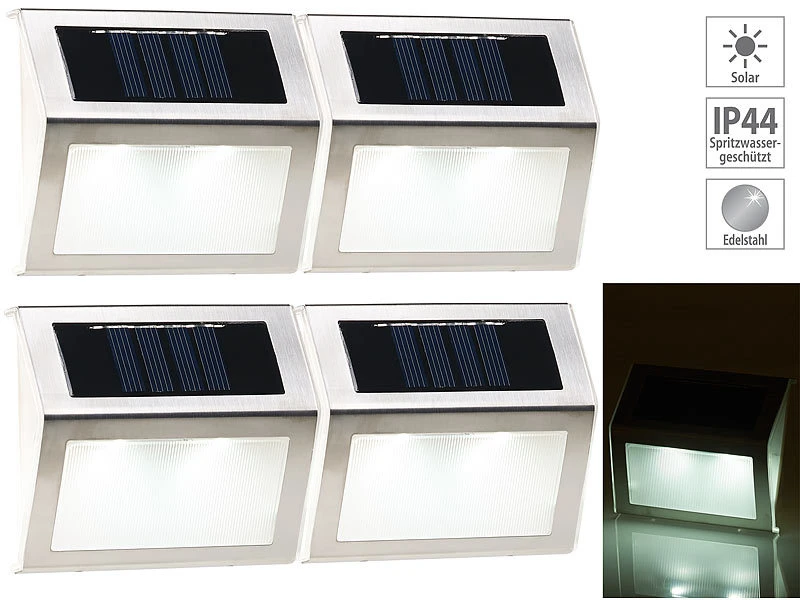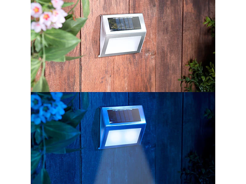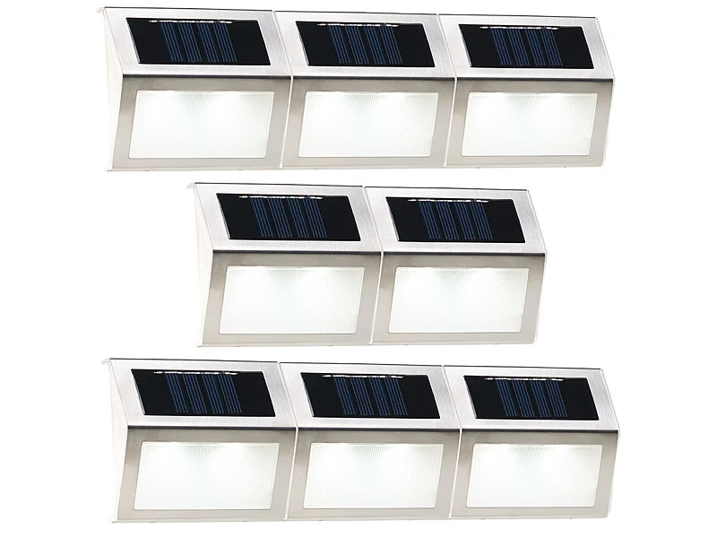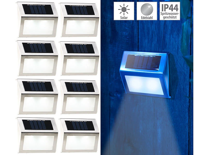 - 8er-Set Solar-Wandleuchten für den geschützten Außenbereich: ideal für Hauseingang, Außen-Treppe, Garten u.v.m.