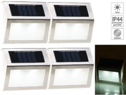 - 8 Solar-Wandleuchten inklusive Montage-Material und deutscher Anleitung – Solarleuchten aussen – Außerdem relevant oder passend zu: Lampe, Panel, Strahler, Terrasse, Wandlampe, Hausnummer, Lichtsensor, Beleuchtung, Solarstrahler, Solarlampe Mini
