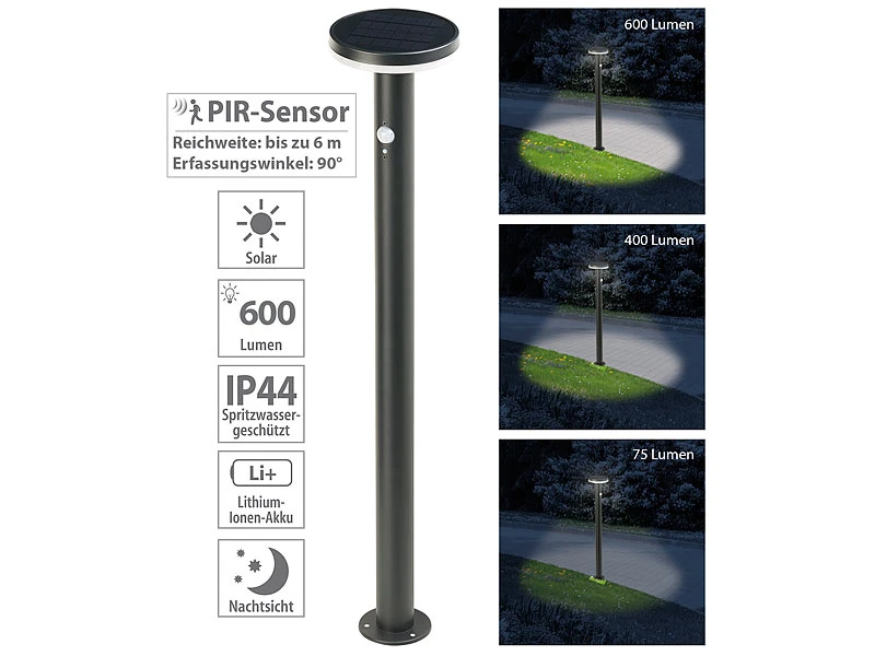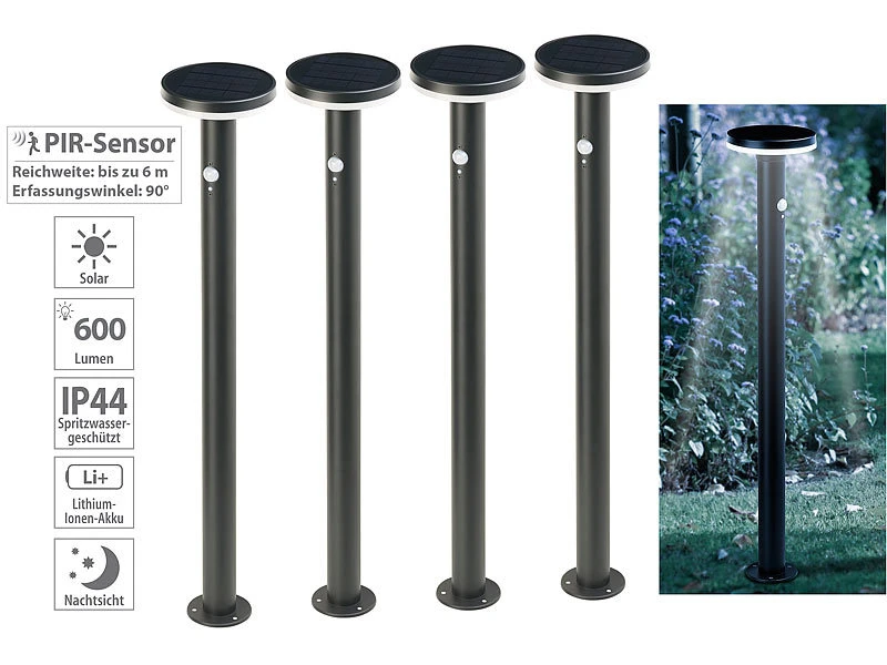 - 4 Außen-LED-Solar-Wegeleuchten SWL-600 mit Bewegungssensor