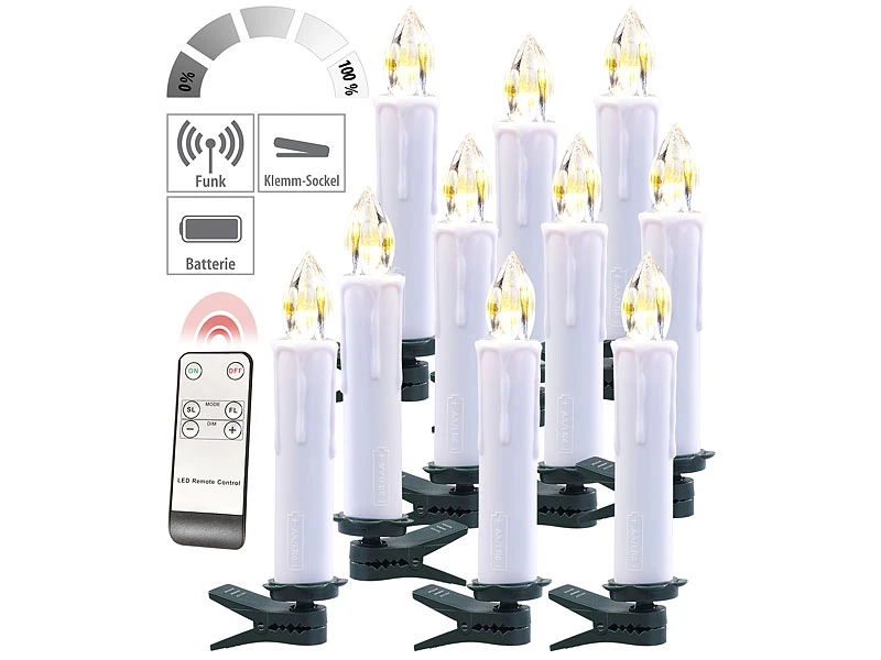 - 30 Kerzen inklusive 30 Clip-Sockeln, Fernbedienung und deutscher Anleitung – Funk Weihnachtsbaumkerzen – Außerdem relevant oder passend zu: RC, Baum, Lampen, Advent, Lichter, Weihnacht, Stabkerzen, Weihnachten, Lichterketten, Kabel, Tannenbaumbeleuchtung, Lichterkette kabellos