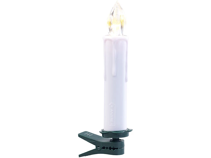 - 10 Kerzen inklusive 10 Clip-Sockeln, Fernbedienung und deutscher Anleitung – Funkkerzen für Weihnachtsbaum – Außerdem relevant oder passend zu: RC, Advent, Advents, Kabellose, Stabkerzen, Elektrische, Weihnachten, Lichterketten, Pyramidenkerzen, Funkfernbedienung, Lichterkette kabellos