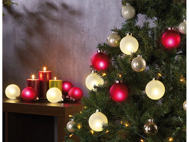 – Beleuchtete Christbaumkugeln – Außerdem relevant oder passend zu: Advent, Baum, Weihnacht, Kerzen, beleuchtet, Tannenbaum, Fensterkugeln, Kugel Weihnachten, Baumkerzen, Lichterkette kabellos, LED Weihnachtsbaumkerzen, Kabellose Weihnachtskerzen, Weihnachtskugeln fürs Fenster - EAN: 4022107218269