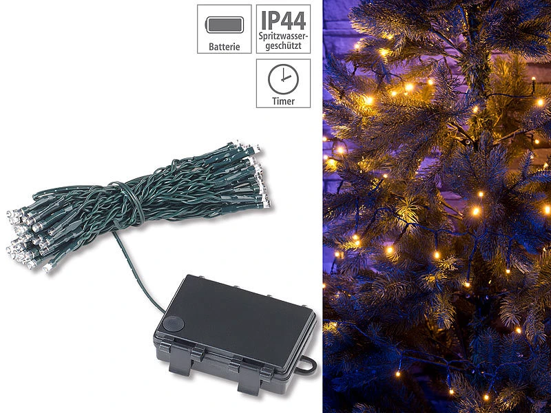 - Länge: 5 m, Länge Zuleitungskabel: 2 m, Maße Batteriegehäuse: 78 x 65 mm – Deko Lichterkette mit Timer – Außerdem relevant oder passend zu: Mini, Kette, Party, Lichter, Outdoor, Terrasse, Weihnachts, Lichternetz, Batteriefach, Winter, Lichtervorhang, Batteriehalter, Weihnachten, Garten Beleuchtung, Zeitschaltuhr aussen, Kabellose Weihnachtskerzen, Weihnachtsbaumbeleuchtung kabellos, Batteriebetriebene Lichterketten innen außen