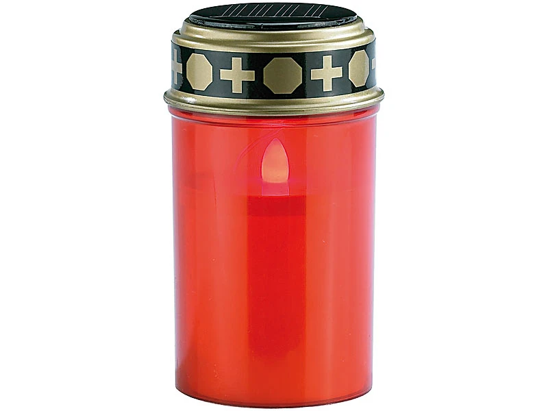 - Rote LED-Grabkerze mit unauffälligem Solar-Panel im Deckel