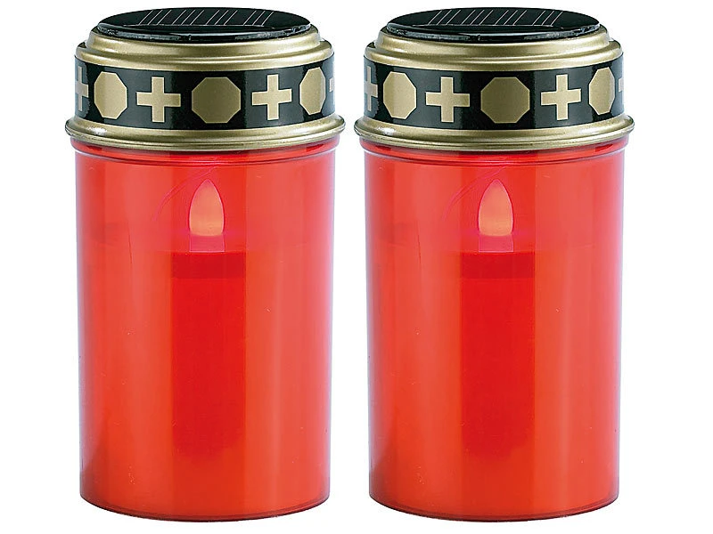 - 2er-Set LED-Grabkerzen inklusive NiHM-Akku und deutscher Anleitung – Grablicht Solar Beleuchtung – Außerdem relevant oder passend zu: Grab, Kerze, Kerzen, Laterne, Outdoor, Schmuck, Solarlampe