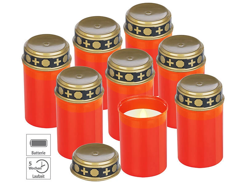 - 8 Grablicht-LED-Kerzen inklusive deutscher Anleitung – Grabkerzen LED – Außerdem relevant oder passend zu: Grab, Flamme, Deckel, Schmuck, Teelicht, Teelichter, Solarleuchte