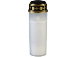 - Weiße LED-Grabkerze mit unauffälligem Solar-Panel im Deckel
