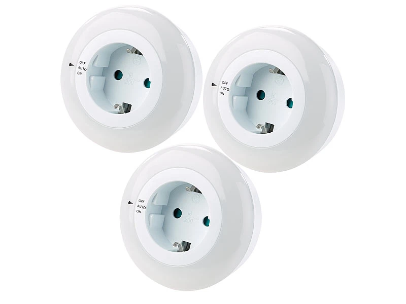 - 3er-Set Nachtlichter mit durchgeschleiften Steckdosen