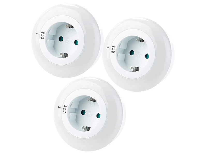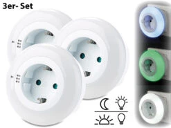 - 3er-Set Nachtlichter mit durchgeschleiften Steckdosen
