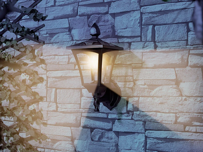 - Solar-LED-Laterne SWL-115 inklusive Standfuß, Wandhalter, Montage-Material, Akku und deutscher Anleitung – Solarlaterne mit Dämmerungssensor – Außerdem relevant oder passend zu: Retro, Vintage, beleuchtet, Gartendeko, Nachtlicht, Lichtsensor, Bewegungs Melder, Deko Beleuchtung, Solarleuchte, Außenlampe mit Bewegungsmelder
