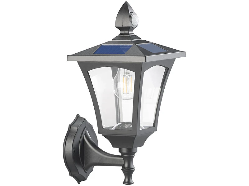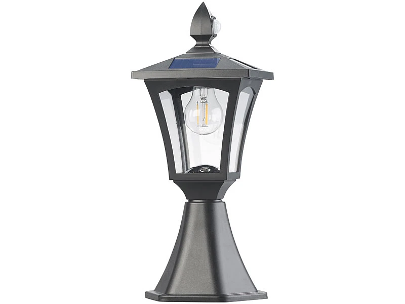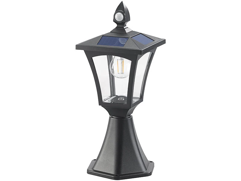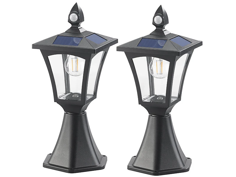- 2 Solar-LED-Laternen SWL-115 jeweils inklusive Standfuß, Wandhalter, Montage-Material, Akku und deutscher Anleitung – Steh-Lampen – Außerdem relevant oder passend zu: Retro, Balkon, Dimmer, Vintage, beleuchtet, Nachtlicht, Lichtsensor, Beleuchtung, Solarleuchte Bewegungsmelder