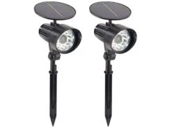- 2 Solar-LED-Leuchten jeweils inklusive 4 Akkus, Wandhalterung, Montagematerial, Erdspieß, deutscher Anleitung – Gartenleuchten mit Bewegungsmelder – Außerdem relevant oder passend zu: Lampe, Garten, Leuchte, Strahler, Terrasse, Spotlight, Pflanzenstrahler, Boden Solarleuchten, Fluter Bewegungsmeldern